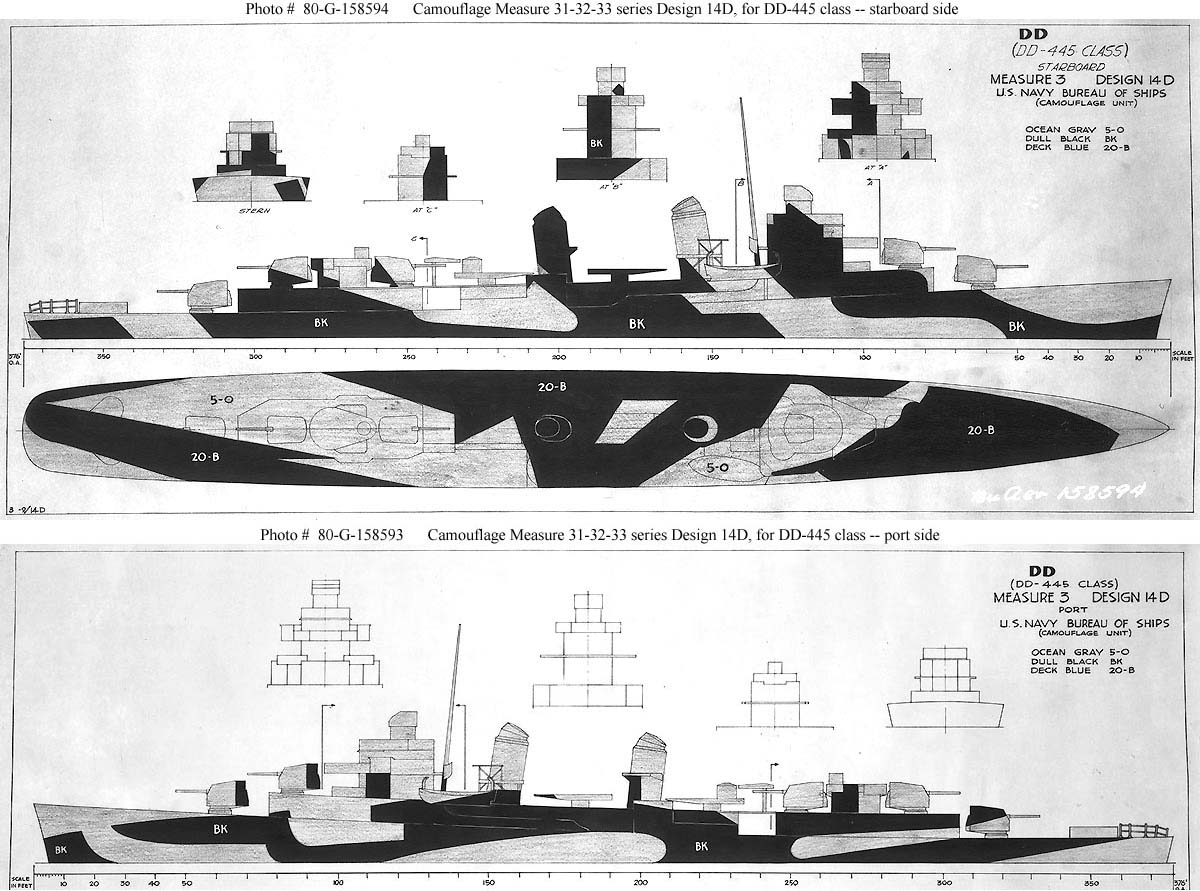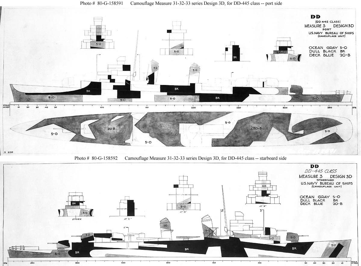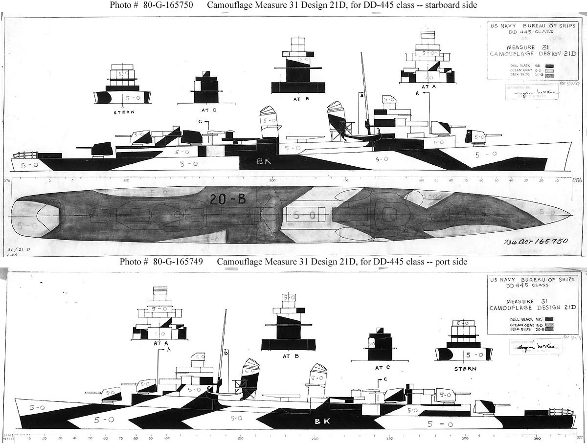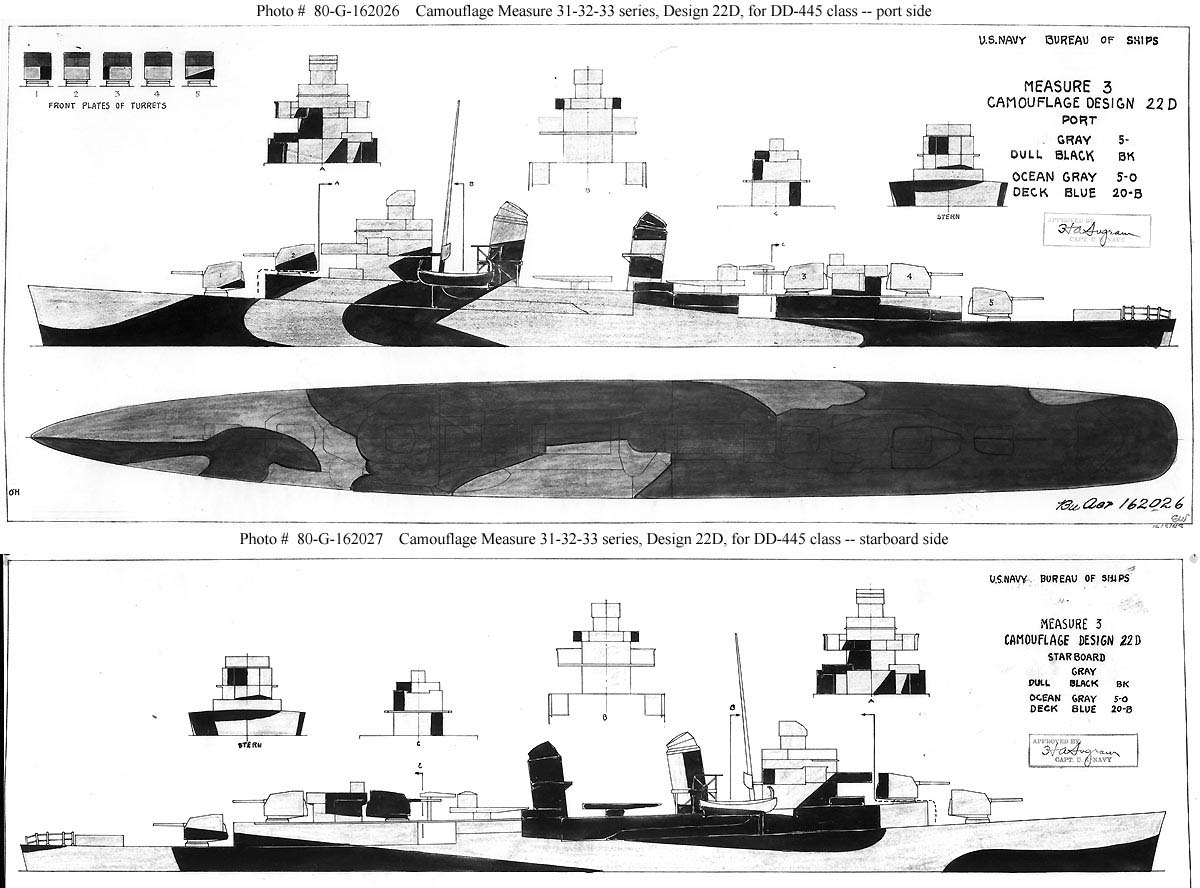 U.S. Navy Destroyer (DD) Fletcher Class Note: A Blank spot indicates no information available. Camouflage Design sheets, when available, are linked to separately from the camouflage measure. Unless otherwise noted design sheets are from the National Archives via the Navy Historical Center | ||||||||