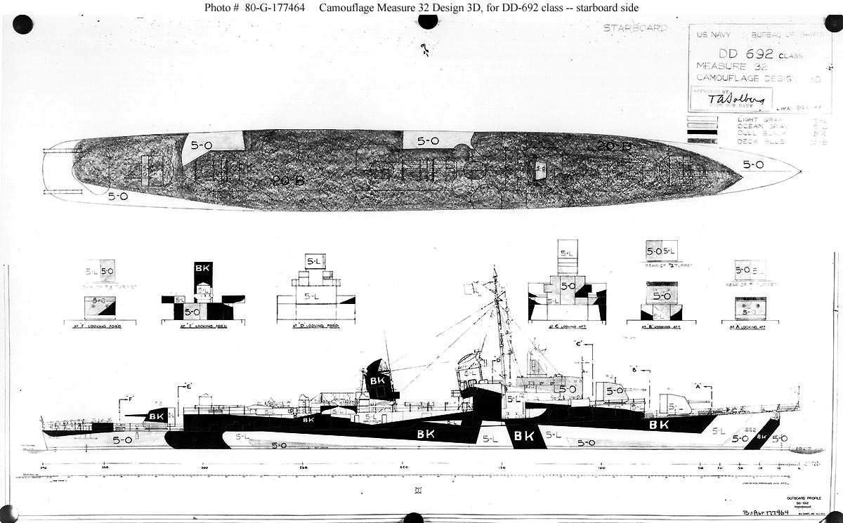 U.S. Navy Destroyer (DD) Sumner Class Note: A Blank spot indicates no information available. Camouflage Design sheets, when available, are linked to separately from the camouflage measure. Unless otherwise noted design sheets are from the National Archives via the Navy Historical Center | ||||||||